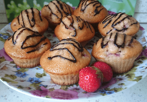 Mint muffins with strawberries are an amazing combination of fresh mint and the sweetness of ripe strawberries, wrapped in tender dough. This dessert originated in American cuisine, where muffins are an integral part of morning breakfasts and cozy family gatherings. The refreshing aroma of mint adds sophistication to the baked goods, while juicy pieces of strawberries provide a pleasant sweet-sour note. The airy texture of the muffins creates a sense of lightness, and the chocolate decoration adds a touch of luxury. These muffins are perfect for summer tea parties; they can be served as a standalone dessert or paired with a scoop of vanilla ice cream. With their harmonious balance of flavors, they will appeal to both lovers of classic sweet pastries and those seeking fresh gastronomic experiences.
