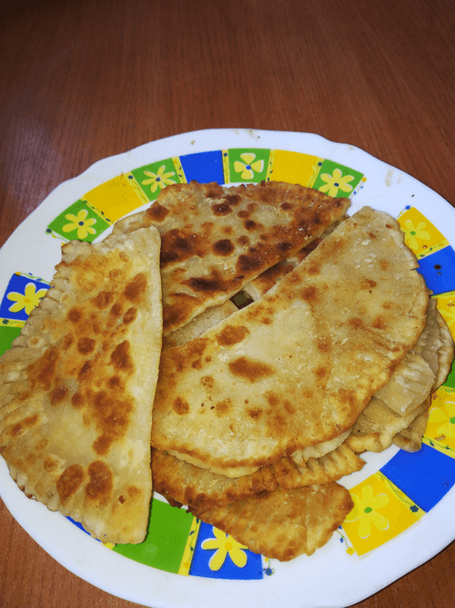 Fry the pies in a well-heated pan with vegetable oil on both sides until golden brown. This amount of ingredients makes about 18-20 pies.