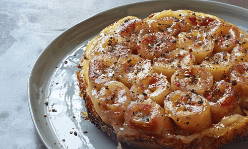 Gordon Ramsay's banana tarte Tatin is an unusual interpretation of the classic French dessert. Instead of the usual apples, ripe bananas are used here, which acquire a rich, velvety flavor with spicy notes of black and pink pepper under the influence of caramel. Vanilla adds a subtle sweetness, while the puff pastry provides a crispy base, turning the dish into a true gastronomic delight. This tart is especially good warm when the caramel remains gooey and the pastry is airy and tender. Perfect for a cozy evening with a cup of strong tea or espresso, as well as an impressive finale to a romantic dinner.