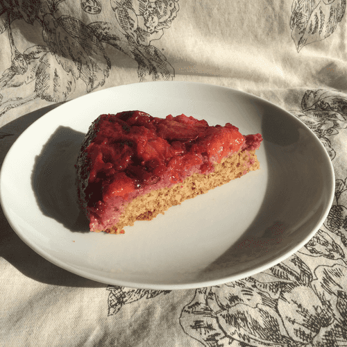 Gluten-free plum-lingonberry upside down cake