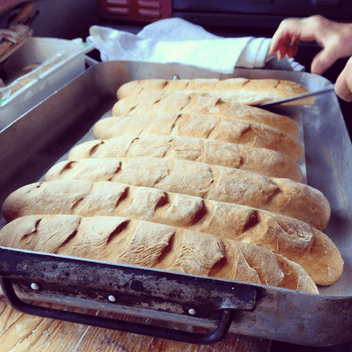Let the dough rest for 15-20 minutes. Divide our ball into several parts and roll them into sausages, placing them on a baking sheet previously greased with olive oil. Make small cuts on the sausages. Bake at 200 degrees until golden brown. It's better not to open the oven during the process.