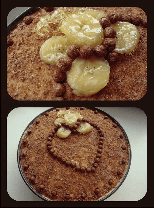 The cake is assembled in the following order: layer + soaking + banana puree + cream.