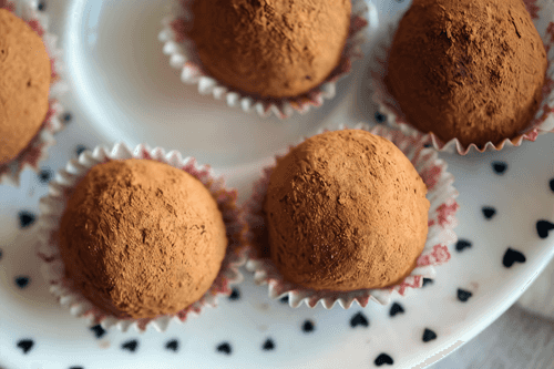 Shape into balls and roll in cocoa powder. Place in the refrigerator for 15 minutes. When serving, place in portioned paper cups.