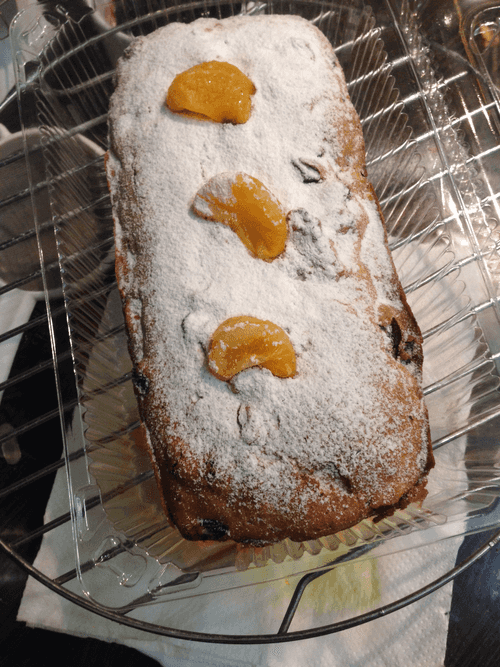 Remove the cooled cake from the mold and decorate with remaining mandarin slices, powdered sugar, thin citrus zest, or rosemary sprigs.