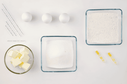 In a small bowl, beat the softened butter, sugar, egg whites, and vanilla extract. Add flour and knead well.