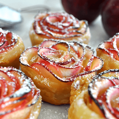 Apple roses in puff pastry are an exquisite dessert combining delicate crispy dough and caramelized apples. This dish, inspired by classic European pastry traditions, symbolizes coziness and home warmth. Apple slices gently cooked in sweet syrup are carefully wrapped in thin strips of dough to form elegant roses resembling flower buds. When baked, the dough takes on a golden hue while the apples release their rich aroma with light caramel notes. Enhanced with nuts, raisins, or candied fruits, these roses become a refined treat for any occasion. They are perfect for a cozy tea time and can adorn a festive table. The simplicity of preparation makes them accessible even for novice bakers, and their appearance invariably evokes admiration.
