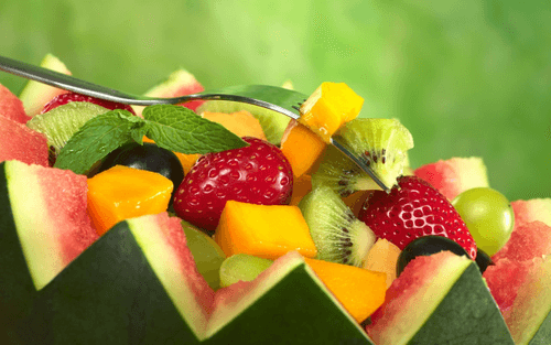 Put all the fruits in a large salad bowl, pour with pineapple and watermelon juice, squeeze lemon and add sugar to taste.