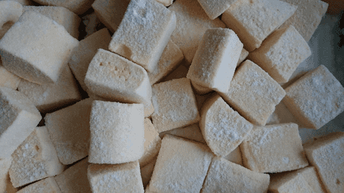 Sprinkle with powdered sugar on top. Leave for 3 hours. Then cut into cubes. Ready!