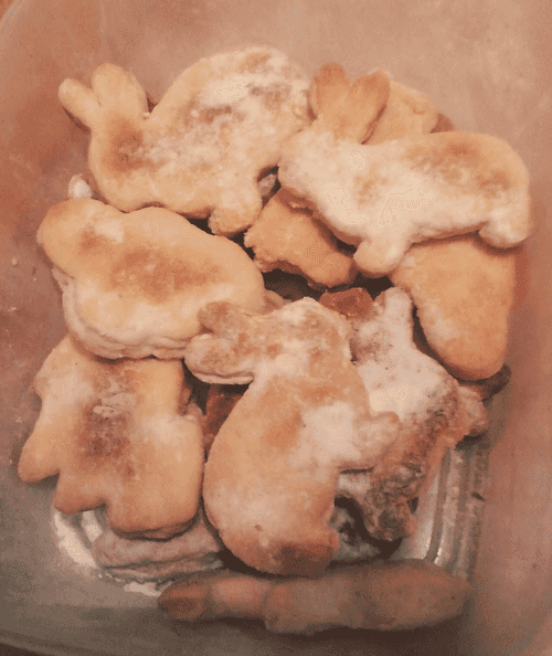 Use molds to cut out shapes and place them on a baking sheet greased with margarine or sunflower oil.