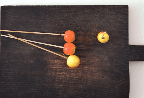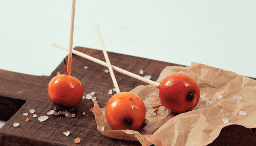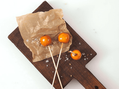 Pierce the apples with skewers. Place in the freezer while preparing the caramel.