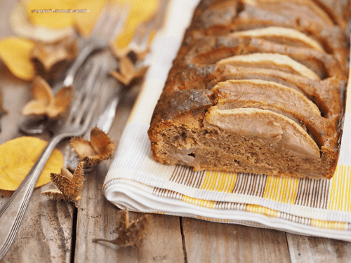 Place the dough in a greased and floured rectangular mold (24-26 cm long) and level it. Top with pear slices and gently press them into the dough.