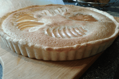 Tart with frangipane and pear is a refined embodiment of French culinary art. Its base is a delicate pastry with a light sweetness that melts in the mouth, creating a perfect balance with the tender almond cream. The frangipane, infused with the aroma of cognac and vanilla sugar, fills the dessert with warmth and depth of flavor. Juicy pears add freshness and fruity lightness, making the tart both exquisite and cozy. This dessert is often found in Parisian patisseries; it is splendid as a conclusion to a romantic dinner or simply as a way to indulge oneself. Served slightly warm, it pairs perfectly with a cup of freshly brewed coffee or a glass of dessert wine.