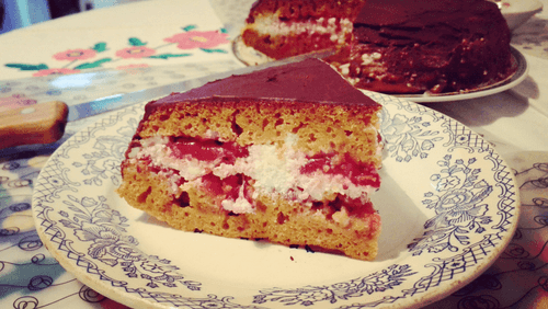 Divide the finished cake into two parts. Spread the cottage cheese layer on the bottom cake and cover it with the second one on top.
