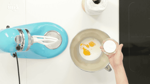 Mix milk, sour cream, egg yolks, sugar, and salt with a mixer.