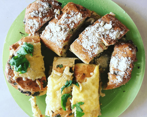 Homemade bread with basil and cheese