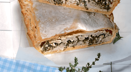 Turkey and spinach pie is a cozy dish of American cuisine that combines the tenderness of turkey, the freshness of spinach, and the creamy texture of cottage cheese. Historically, such pies became popular due to the tradition of festive casseroles where meat is paired with vegetables. This pie is perfect for family dinners as well as cozy evenings with friends. The flavor is rich: juicy meat harmonizes with a light nutty note of nutmeg, while the crispy crust contrasts with the soft filling. It is served warm, accompanied by a light salad or spicy sauce. Rich, aromatic, and nutritious, this pie easily becomes a favorite among home recipes.