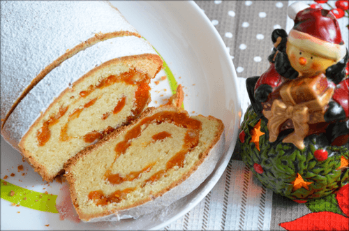 Preheat the oven to 200°. Place the roll seam side down in a greased loaf pan and bake for 60 minutes. Melt the remaining butter. Brush the still hot cake with butter and sprinkle with powdered sugar.