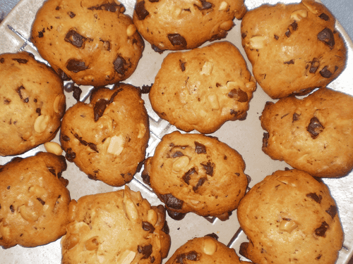 Now add chopped nuts and chocolate chips to the dough. Mix well.