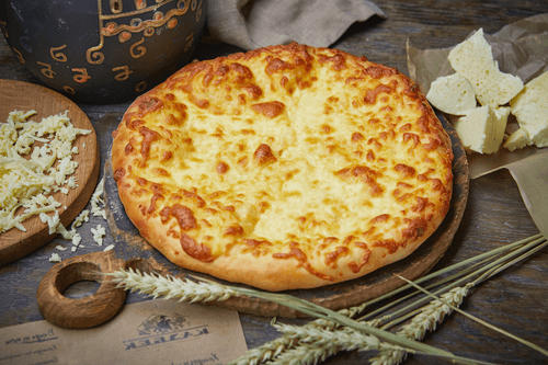 Khachapuri Imeretian style is one of the most beloved dishes of Georgian cuisine, embodying the traditions and flavors of the Imereti region. Its base is soft, airy dough that harmoniously combines with tender, slightly salty cheese. This type of khachapuri is distinguished by its round shape, with the filling evenly distributed inside to create a perfect balance of taste. The history of the dish goes back to ancient times when Imeretian housewives prepared it for family feasts and celebrations. Khachapuri is enjoyed hot, savoring the stretchy cheese and crispy crust of the dough. It serves well as a main dish or as an appetizer complemented by fresh vegetables or aromatic Georgian wine. It is not just food but an expression of hospitality and warmth that brings people together at one table.