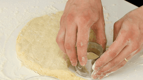 Make a flatbread from the dough with a thickness of 3-4 cm. Cut scones from the dough using a pastry ring, dipping it in flour each time.