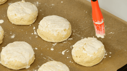 Brush the scones with cream and place them in an oven preheated to 200 degrees for 12 minutes.