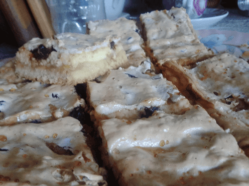 After taking the pie out of the oven, spread the egg whites and put it back for 20 minutes. The egg whites should brown.