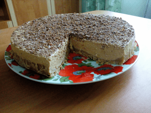 Line a 26 cm diameter mold with food wrap and press the mixture tightly onto the bottom and sides of the mold. Place in the refrigerator.