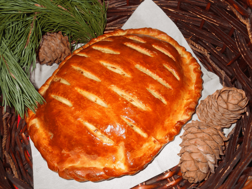 Kulebyaka with a complex filling is a true masterpiece of Russian cuisine, embodying the traditions of rich pies with multilayered fillings. Its roots go back to pre-revolutionary Russia when kulebyaka was considered an exquisite dish for festive tables. The dough is tender and airy with a crispy golden crust, while the filling is a triumph of flavor harmony: juicy meat, aromatic mushrooms, tender rice with eggs and herbs. Thanks to the layers of pancakes, each component retains its texture and richness. Kulebyaka is not just a pie but a culinary art that requires patience and skill. It is perfect for festive tables, impressing guests with its rich taste and appetizing appearance. This dish warms the soul, reminding one of family traditions, the warmth of home hearths, and the centuries-old history of Russian cuisine.
