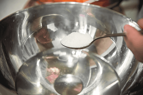 Only then add salt to the water (half a teaspoon). Mix the salt well in the water.