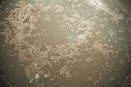 You will see that the yeast growth process has started in just 10 minutes: either foam will appear on the water's surface, or the water itself will be filled with air bubbles like soda.