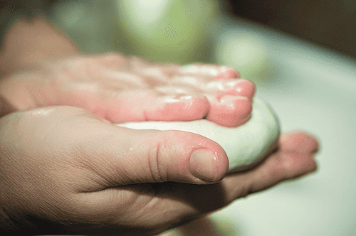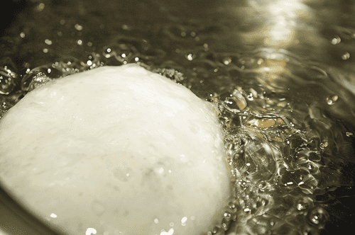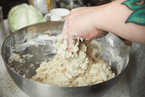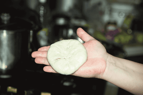 Take the dough in your palm. Gather the edges of the dough to the center and pinch.
