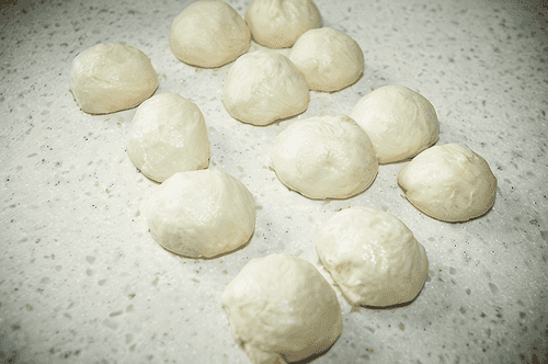 Roll each piece into a ball and let it rest for 10 minutes.