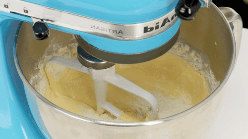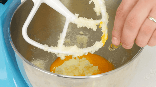 Beat softened butter with sugar until white using a mixer, add egg yolks, vanilla, and continue beating.