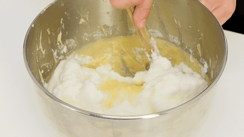 Whip the egg whites separately into a strong foam. Gently mix the egg whites with the batter using a silicone spatula.