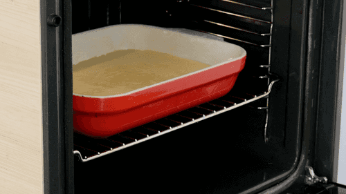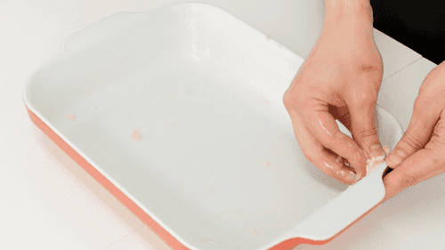 Grease the baking dish with butter and dust with flour to prevent the pie from sticking to the sides and bottom during baking.