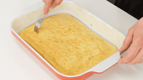 Let the pie cool for 20 minutes. Poke it thoroughly with a fork so the filling absorbs well.
