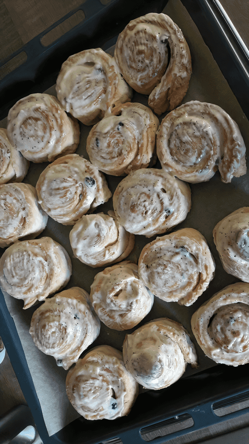 Take the hot rolls out of the oven and grease them well.