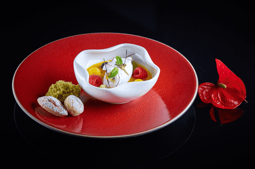 Blancmange with tropical fruits is an elegant dessert of French cuisine that combines a delicate texture with bright, sunny aromas. The origins of blancmange trace back to Medieval Europe when this dessert was made with almond milk. Today it has taken on a new form enriched with creamy tenderness and exotic fruits. The lightness of whipped cream and the silky structure of gelatin create airiness, while mango, passion fruit, and coconut provide a tropical burst of flavors. The combination of sweetness, freshness, and a hint of tartness makes it the perfect ending to a dinner. Served with berries, pineapple chips, and mint, this dessert transforms into a true work of art on the plate. Refreshing, light, and delightful, it will please even the most discerning gourmets.