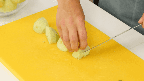 Peel the apples, cut them in half, and remove the cores.
