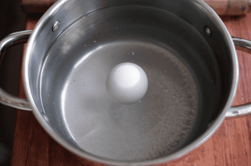 The second pickling method is a bit trickier. It's more reliable if the cucumbers are not stored in the coolest place. Pour clean cold water into a pot, add an egg, sprinkle in salt and stir until the egg floats: this indicates that the brine is very strong. It's hard to say exactly how much salt is needed, so the egg serves as an indicator.