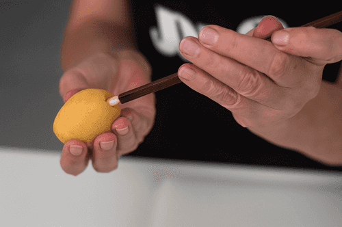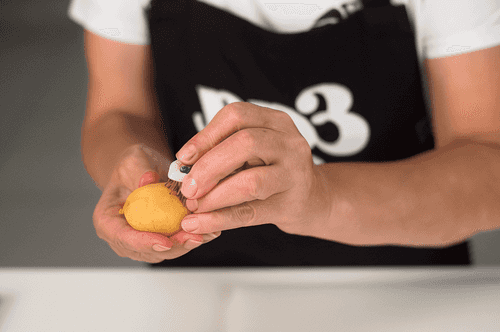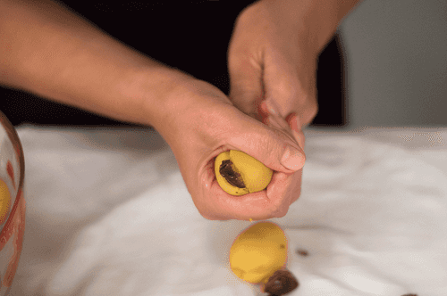 Remove the pits from the apricots. Eastern chopsticks work well for this. Push the thick end of the stick into the spot where the apricot was attached to the stem and push it in deep while holding the apricot firmly with your fingers. It sounds complicated, but it's actually very simple.