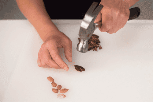 Crack the stones with a hammer and extract the kernels.