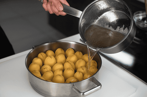 Pour the syrup over the apricots again and leave for another 12 hours. In total, the apricots should sit for 12 hours three times.