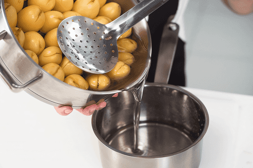 Transfer the apricots to sterilized jars and pour in the syrup. The jam is ready.