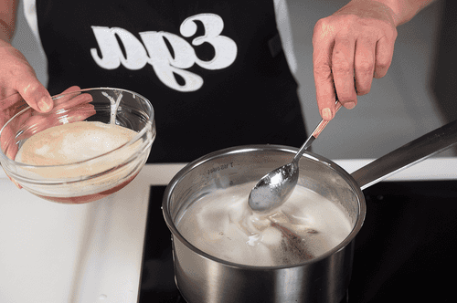 Boil the syrup for three minutes to remove excess moisture.