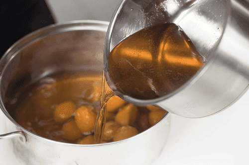 After 12 hours, pour the syrup into the pot.