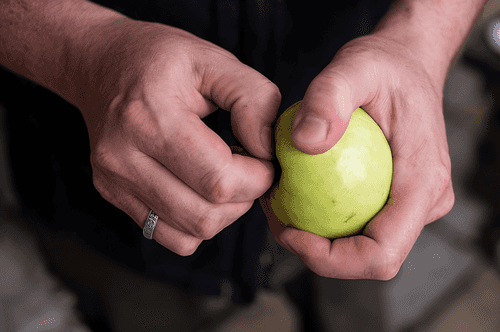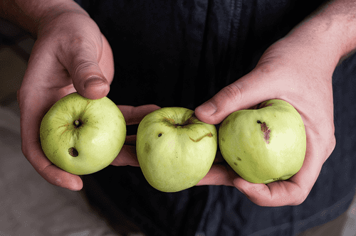 Remove the stems and what remains of the flowers from the apples.