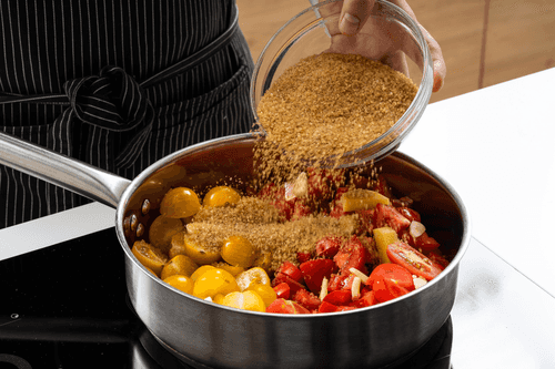 Pour in the vinegar and boil for 5-10 minutes until the moisture evaporates. The syrup should thicken and become more viscous.