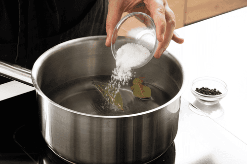 Prepare the brine. Pour water into a pot, add salt, pepper, and bay leaf. Bring to a boil and cook for 5 minutes.
