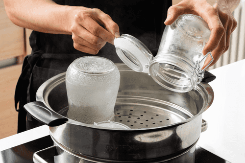 Wash a half-liter jar and scald it with boiling water.